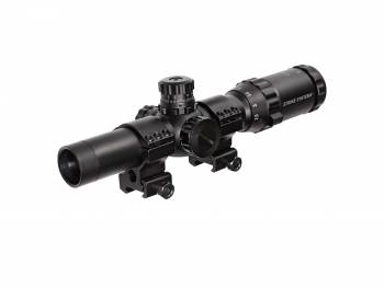 The Short Dot sight by ASG is for the dedicated marksmen who needs to move from CQB to long range targets quickly and with precision. This 1-4×24 provides an optical clarity and with illuminating reticles a precise tool for any player. This version of the Short Dot CQB sight features both a red and green reticle which are adjustable in brightness levels The Short dot is made out of a full metal body with mount rings included.
