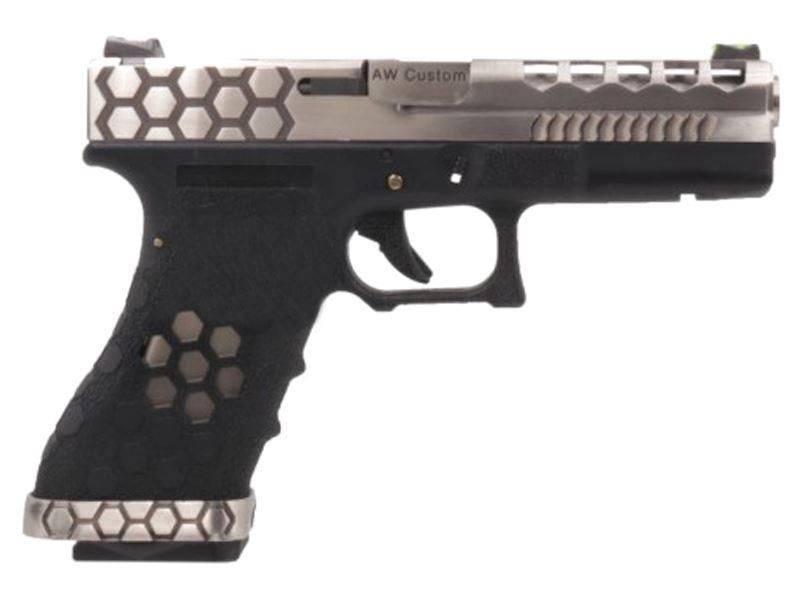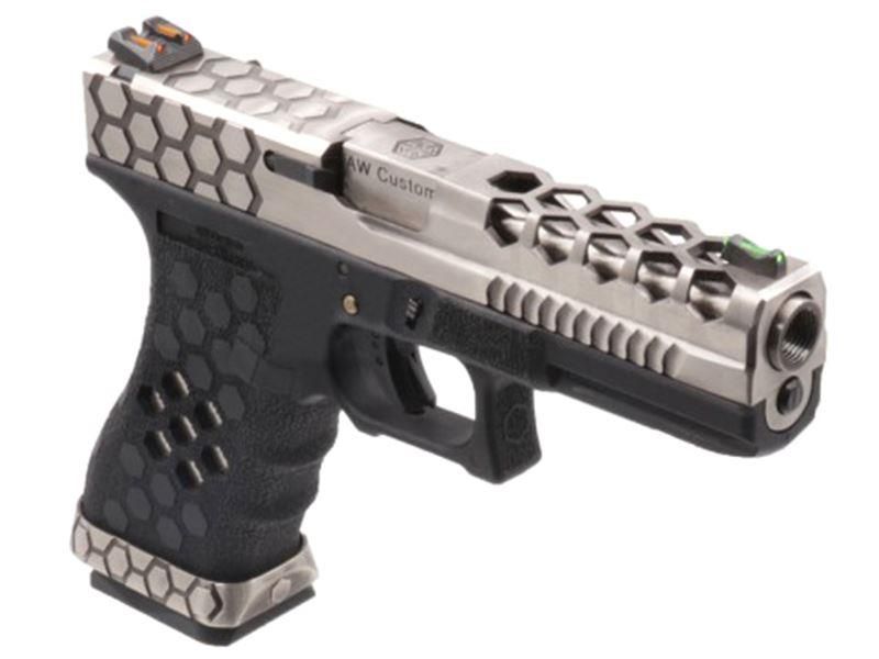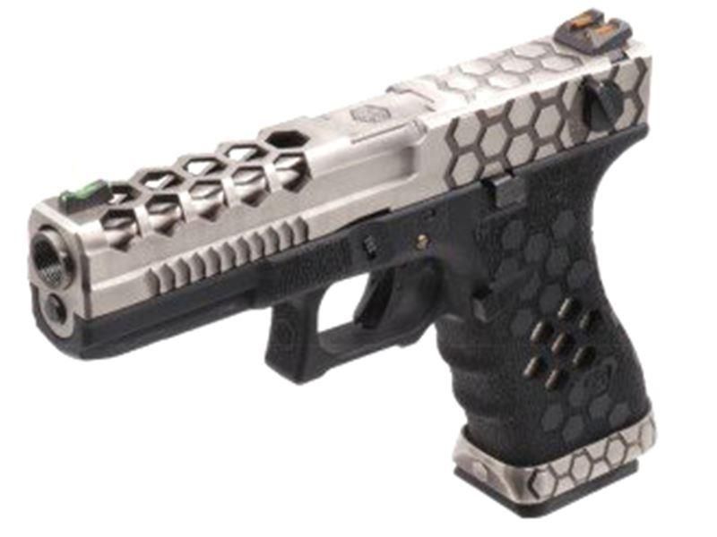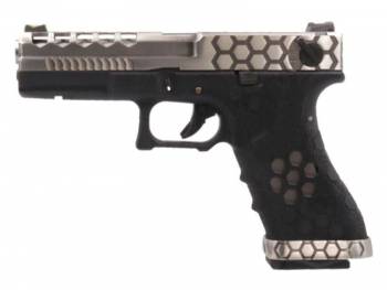 Home / Shop / Airsoft Guns / Airsoft Pistols / Gas & CO2 Airsoft Pistols / CUSTOM HEX CUT GLOCK BLACK SILVER (141)
