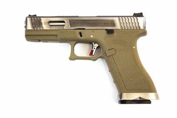 Home / Shop / Airsoft Guns / Airsoft Pistols / Gas & CO2 Airsoft Pistols / WE E Force EU17 Tan – Silver Slide / Silver Barrel