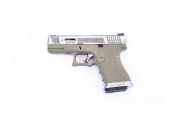 Home / Shop / Airsoft Guns / Airsoft Pistols / Gas & CO2 Airsoft Pistols / E Force EU19 Tan – Silver Slide / Silver Barrel