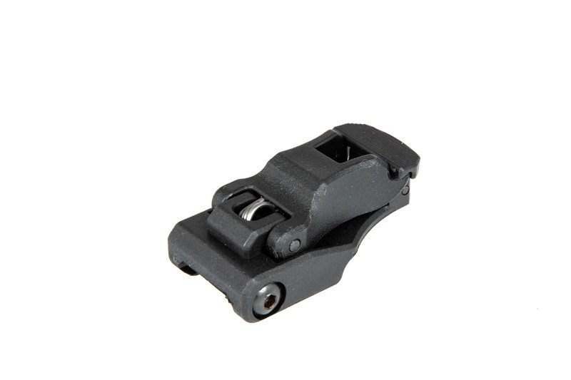 A flip-up front sight made of polymer for AR15 replicas, mounted on RIS / Picatinny 22 mm rails.