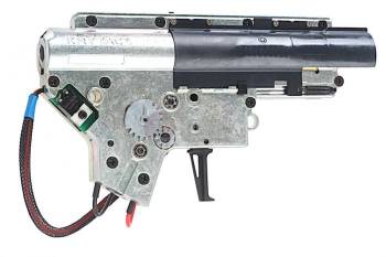 This complete gearbox is ready to drop into any Krytac rifle as a replacement, or to transplant into any Version 2 accepting RIF for unmatched levels of out-of-the-box performance. Krytac are well known for their commitment to quality and this ready-to-install gearbox is no exception. It features an integrated MOSFET for electrical protection, 8mm bearings and Krytac’s usual heat treated gears for exceptional longevity. The whole shell has been designed for structural integrity, ensuring there are no weak points which will cave to stress during firing. The quality extends to the components included inside such as the piston which has metal teeth, the second to last of which has been removed to ensure proper and efficient engagement. The cylinder head features a thick rubber pad to aid in quieter operation and longer lasting performance. The spur gear features Krytac’s usual higher tensile spring to maintain better engagement, especially when under stress. Other neat features of this complete package are the window on the side of the case which is ideal for the application of lubrication, and to check on internals without going through the stress of opening it up. A quick change spring system means that you won’t have to completely disassemble the unit to change the main spring of your weapon. Whether you need a replacement for your precious primary, or want to shoehorn Krytac levels of durability and performance into any Version 2 accepting RIF, this gearbox is a surefire choice.