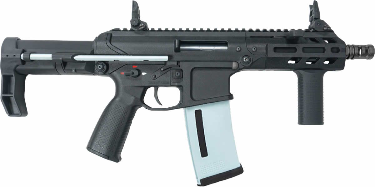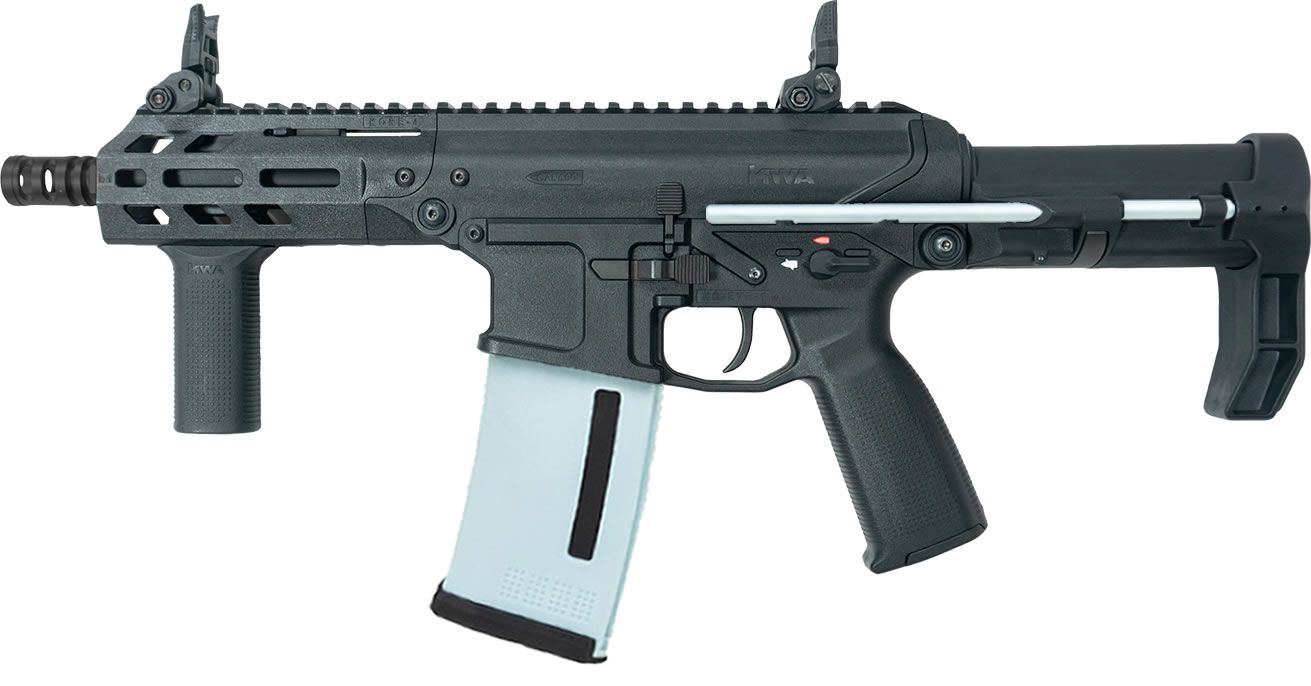 The side charging handle allows for convenient hop up adjustment and the integrated pistol grip is optimized for maximum ergonomics. The KO:EVE-4 comes with KO’s new slim line vertical grip and maintains it’s compact footprint using KWA’s tried and true PDW stock. PTS Enhance Polymer Sights, two port muzzle brake, ambi fire controls, and optional quick detach sockets front and rear round out the external package. Internally, the KO:EVE-4 shares the same 2.5+ VPS gearbox as the TK.45c, Ronin T6, QRF Mod Series, Ronin 47. Install your favorite aftermarket electronic trigger group, and you have an ultra-responsive and lightweight polymer AEG with legendary KWA performance.