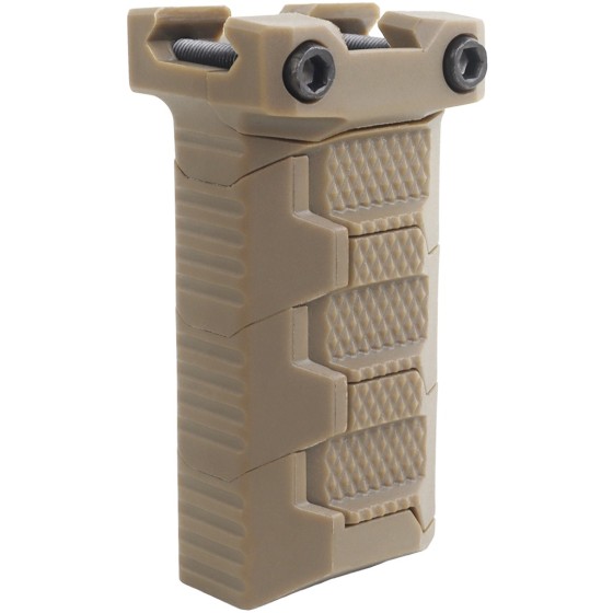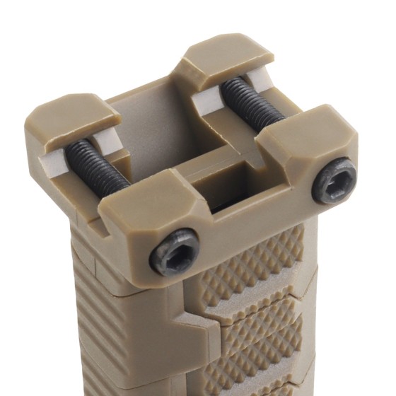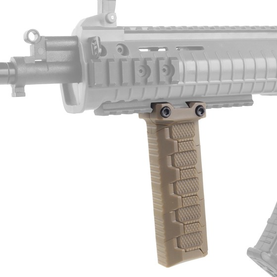 Modular RIS-mounted foregrip with adjustable height, designed to improve replica control and handling across different setups.