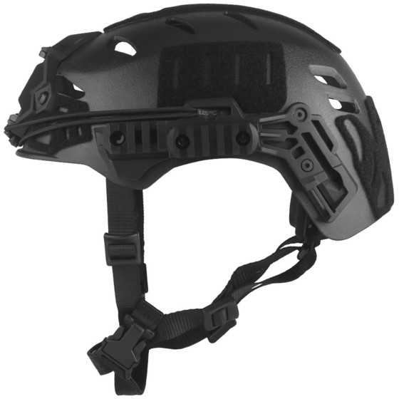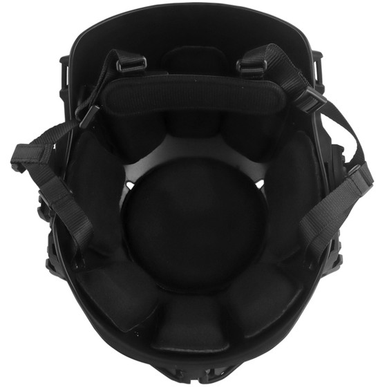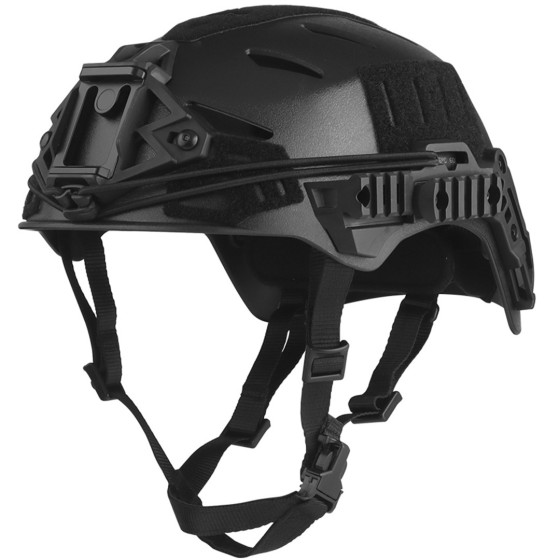 Lightweight polymer helmet with NVG mount, side rails, and single-layer padding, offering adjustable fit for practical field use.