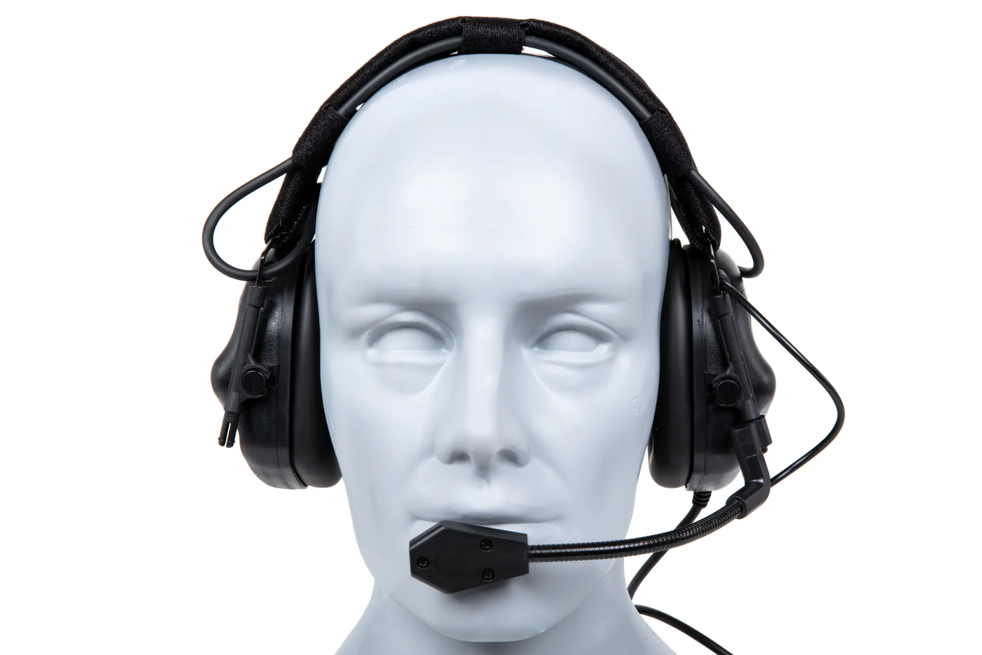 The headphones do not have an active soundproofing function, they can be used as They do not have an active soundproofing function, but can be used as a classic ear protectors with the possibility of connecting them to the PTT (MILITARY type plug) and receive/transmit messages via the built-in speakers and microphone on the flexible stem. speakers and microphone on a flexible headband.