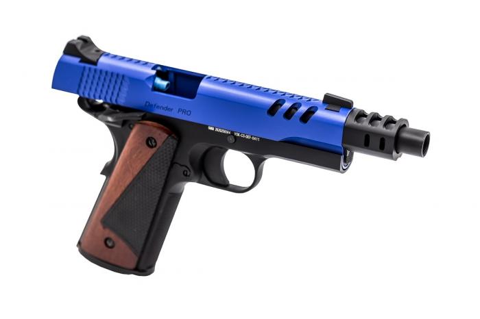This MEU GBB Pistol is available in traditional monochrome colours – Black, Chrome & Brushed Aluminium with a Dual Tone Blue option available. The flagship Chrome/ Black and Black/ Chrome design is available as a contrasting double pack, as well as the Dual Tone Blue option.