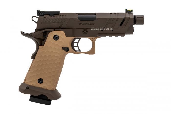 The CS VENGEANCE is VORSKs first Hi-Capa variant to come through their Custom Shop range, and what a Hi-Capa it is. Based on a popular race-platform sidearm, VORSK have furthered this design by introducing a floating BDS option to the world of Airsoft Replicas. Add to this a distinct range of colours including a Metallic Red, and a Dark Earth/ Tan variant, the CS VENGEANCE is another desirable airsoft sidearm from VORSK.