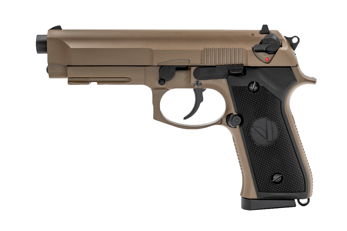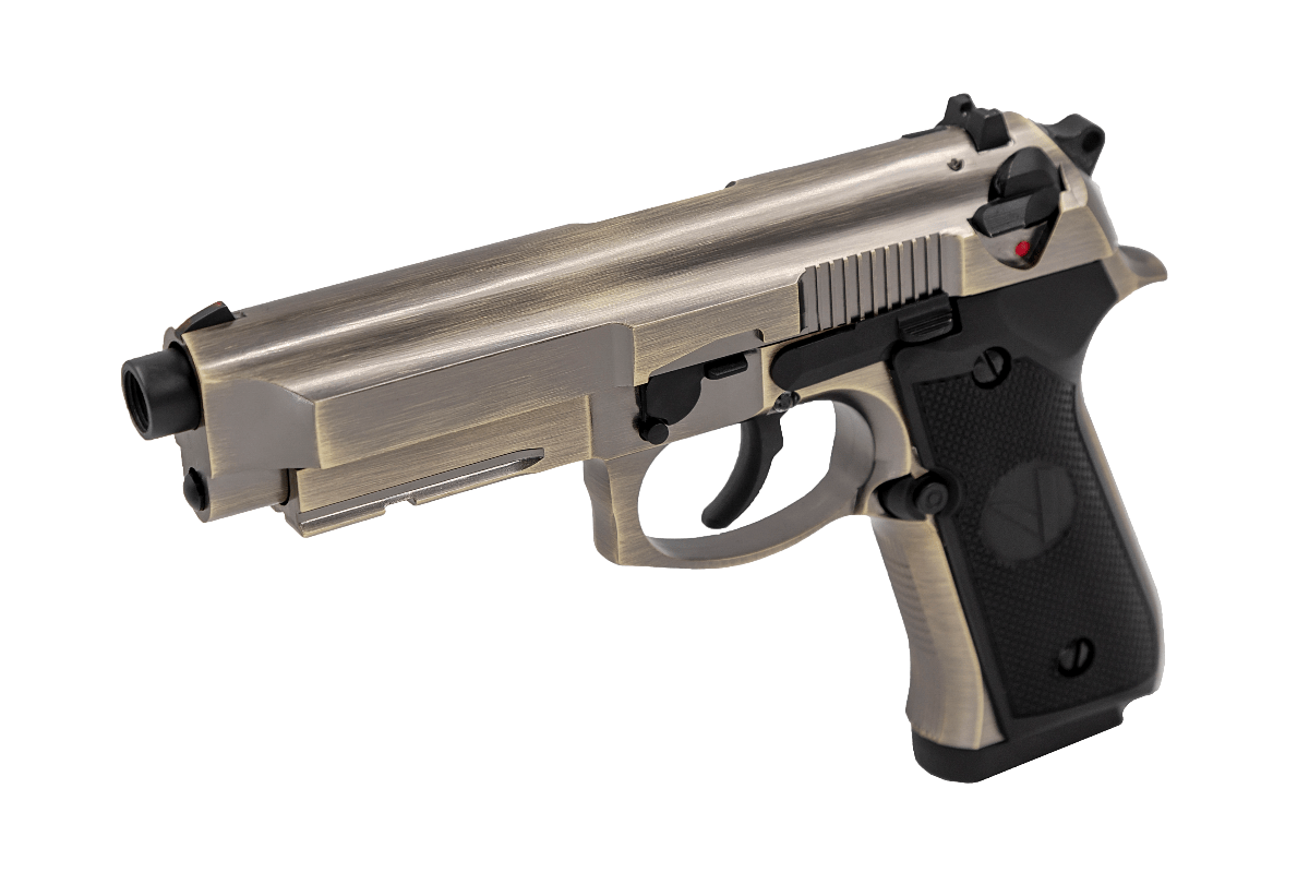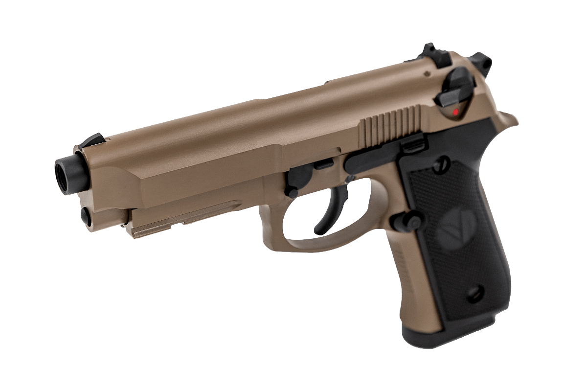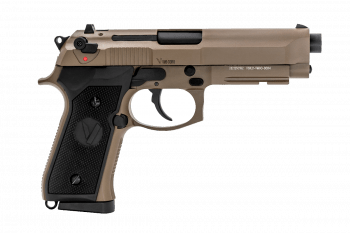 The OSIRIS is built upon the famous M9 platform but with a few key design changes. Inspired by a real-steel concept of this trusty sidearm, the OSIRIS is a full-auto replica with a reinforced slide and fitted with a picatinny accessory rail.