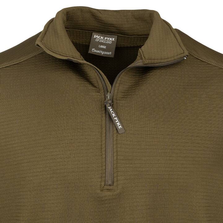 Stay warm and comfortable in the great outdoors with the Jack Pyke Waffle Fleece Top. Designed with a soft, textured waffle fabric for insulation and breathability, this lightweight pullover is perfect as a mid-layer or standalone piece. Featuring a high collar and a practical quarter-length zip for easy ventilation, it offers both comfort and versatility. Ideal for shooting, hiking, or everyday wear, the fleece’s olive green tone ensures a classic outdoor look.